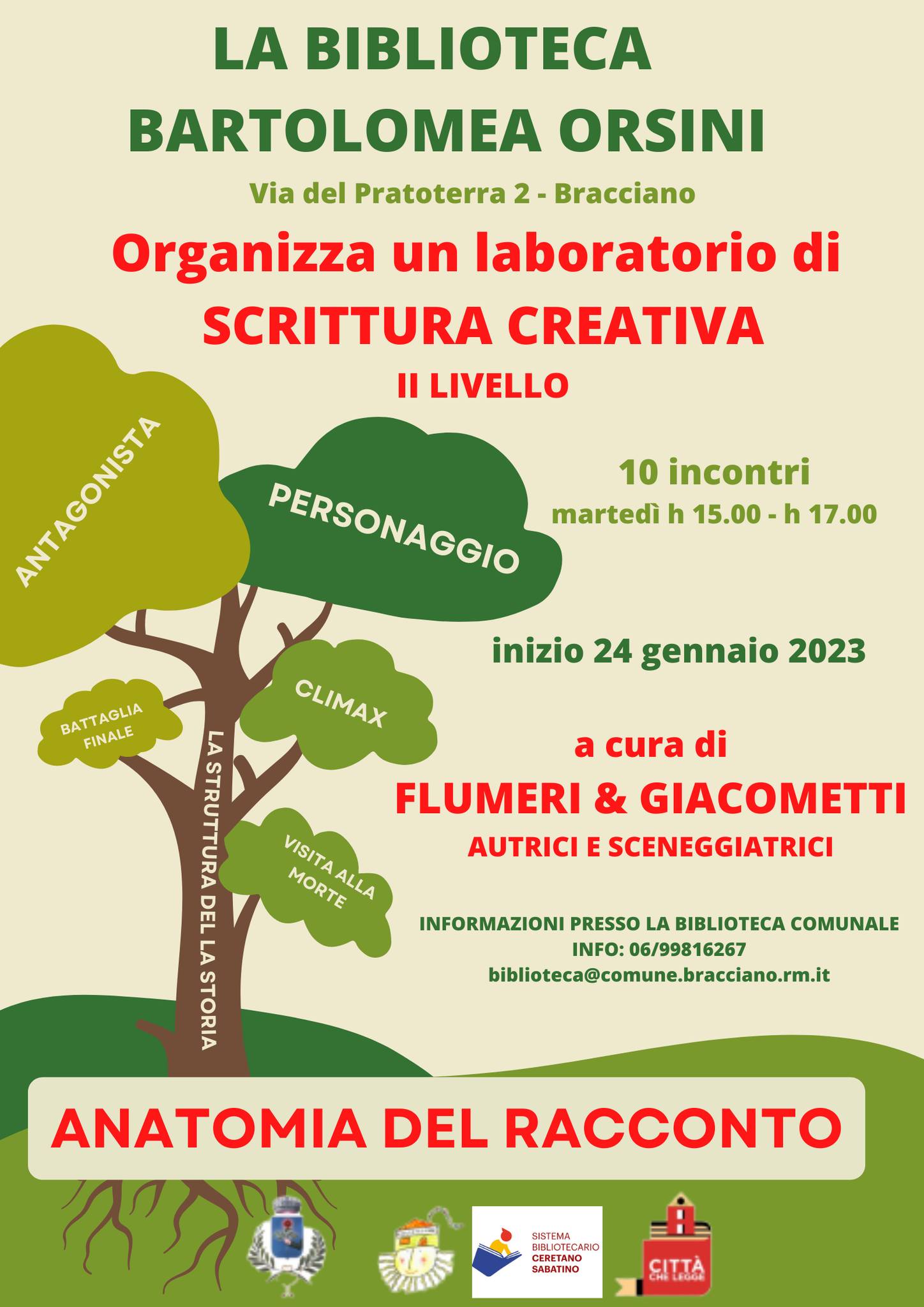 Laboratorio di scrittura creativa presso la Biblioteca Bartolomea Orsini "Anatomia del racconto" da martedì 24 gennaio dalle dalle 15:00 alle 17:00 per 10 incontri.