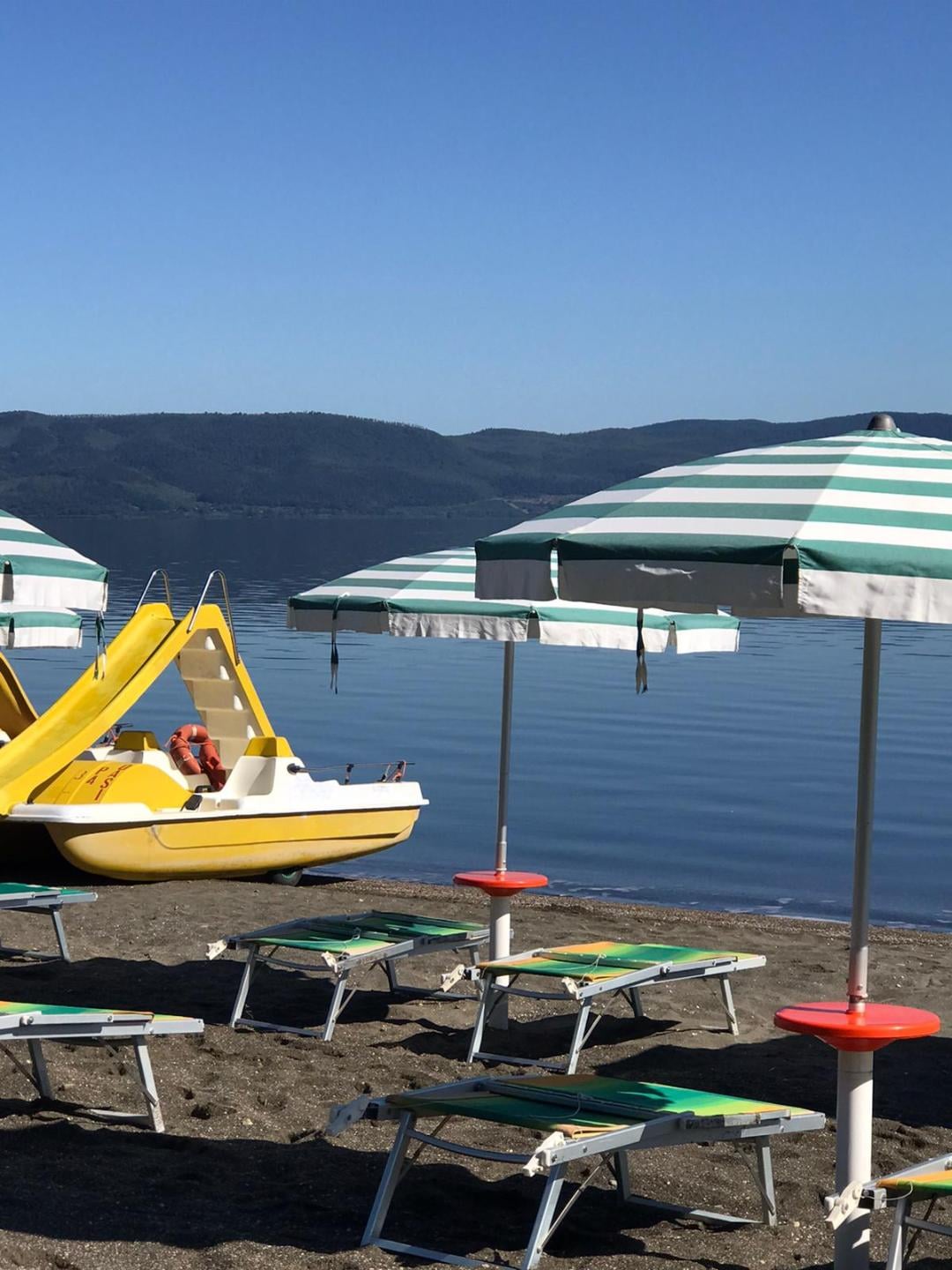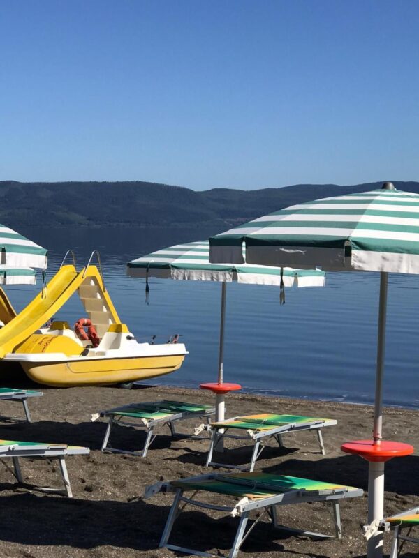 Campeggio situato davanti alle sponde del lago di Bracciano.