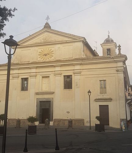 L’interno è a croce latina, con la navata voltata a botte e scandita, sui fianchi, da dipinti di fine Barocco.
