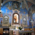 In alto spiccano la croce a doppia traversa (simbolo dell’Istituto Santo Spirito), e la colomba della pace.