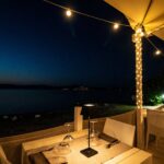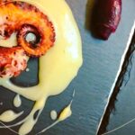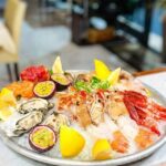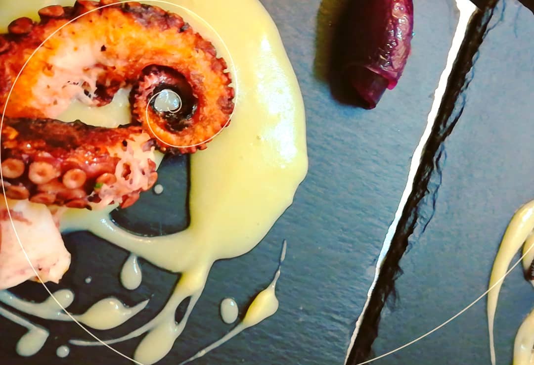 Ristorante vista lago con piatti a base di pesce di mare