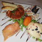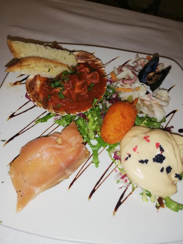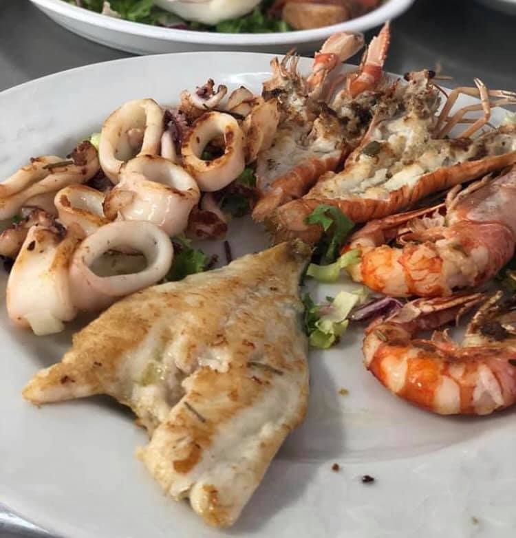 La sua cucina, oltre a numerosi antipasti quali moscardini al sugo, cocktail di gamberi e carpacci vari di mare, serve squisite specialità quali ad esempio: