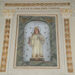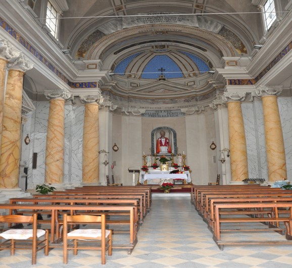 Varcata la soglia d’ingresso ci accoglie l’unica navata della Chiesa, fiancheggiata da grandi colonne che sorreggono il cornicione perimetrale. La navata culmina nell’abside centrale, con l’Altare e la nicchia dove è riposta la statua di S. Biagio di Sebaste, Vescovo e Martire. Guardando in alto noteremo il soffitto a volta a botte mentre il pavimento è composto da marmette di cemento.