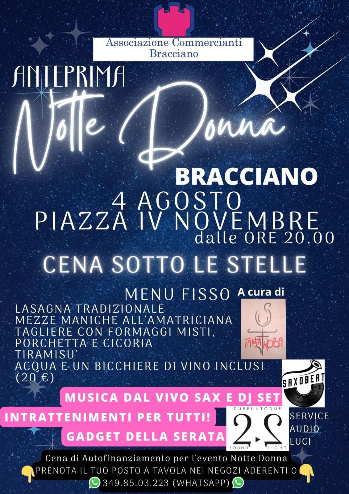 Anteprima Notte Donna giovedì 4 agosto 2022 dalle ore 20:00 in piazza IV Novembre a Bracciano.