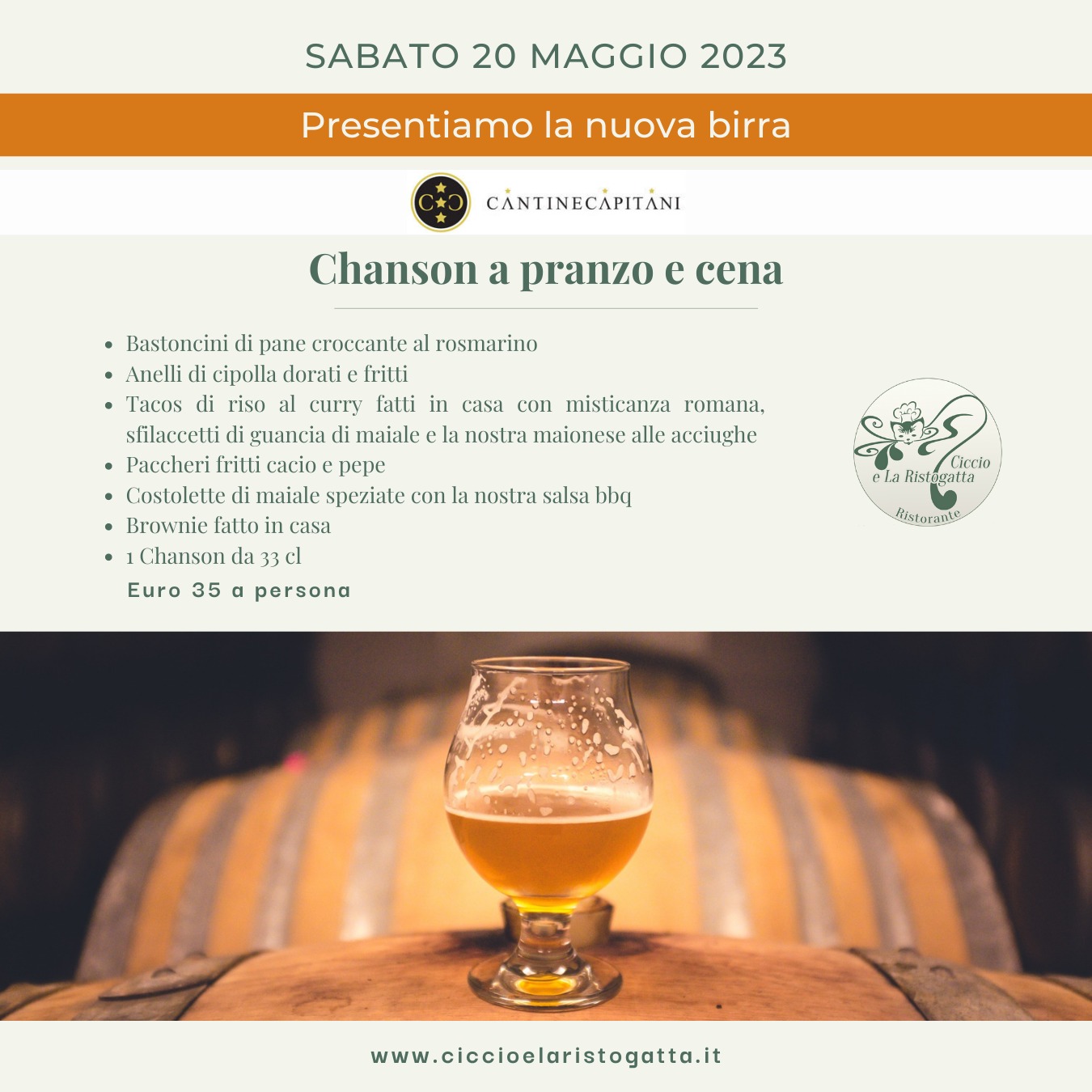 Chanson รจ una birra bionda morbida e speziata, prodotta da mosto d’uva delle Cantine Capitani di Trevignano nella ๐๐ข๐ฅ๐ฅ๐ญ๐จ๐ฉ ๐๐ซ๐๐ฐ๐๐ซ๐ฒ di Bassano Romano, birrificio indipendente.