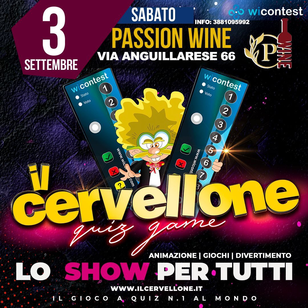 Da sabato 3 settembre 2022, per tutti i sabati della stagione, la serata del PassionWine sarà animata da Il Cervellone – quiz game.