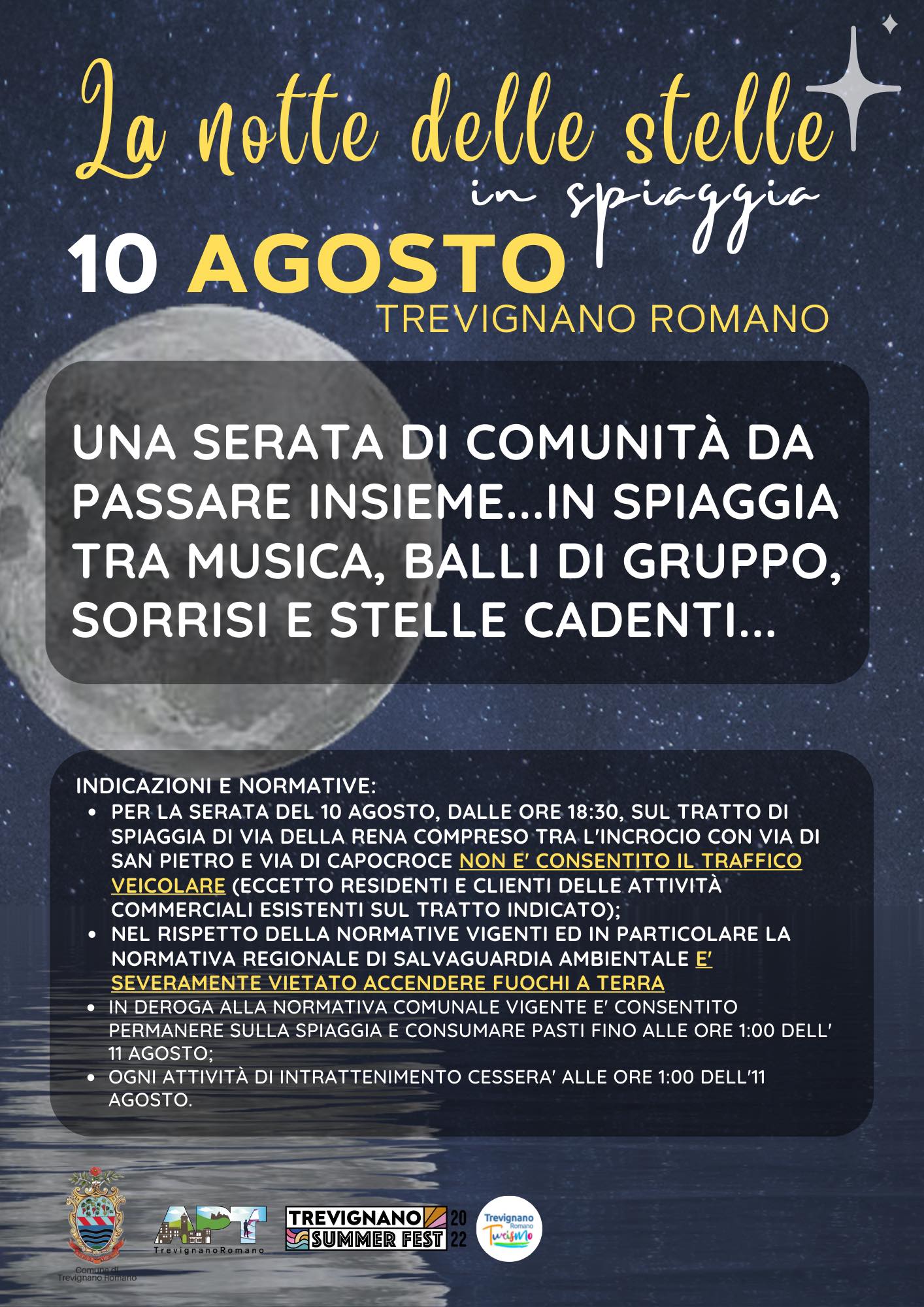 In deroga alla normativa comunale vigente è consentito permanere sulla spiaggia e consumare pasti fino alle ore 1:00 dell’ 11 agosto.